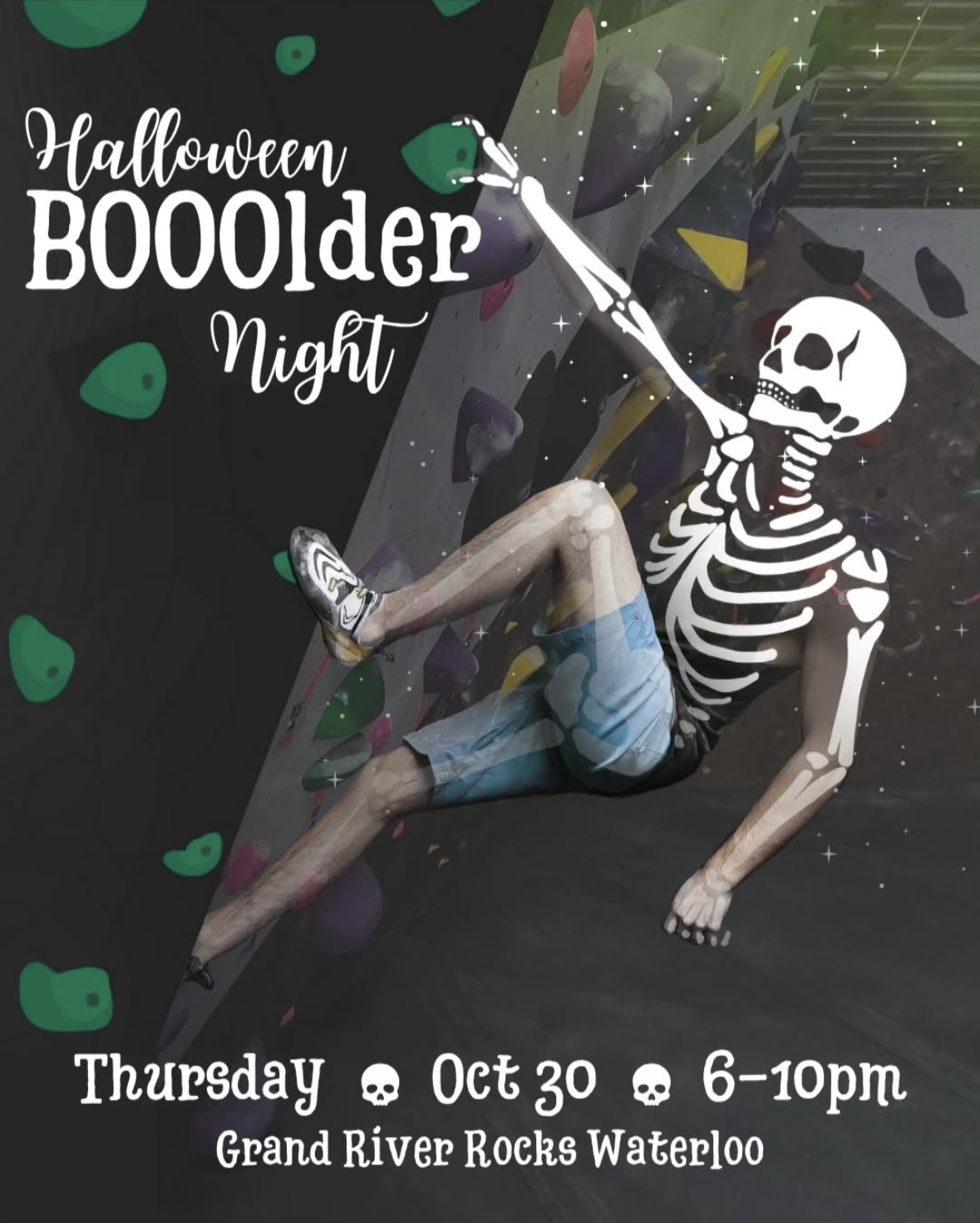 We are an indoor climbing gym in Waterloo, Ontario. We have bouldering problems of various difficulty from beginner to seasoned climbers. We also have a moon board, campus boards, and a training/workout area.